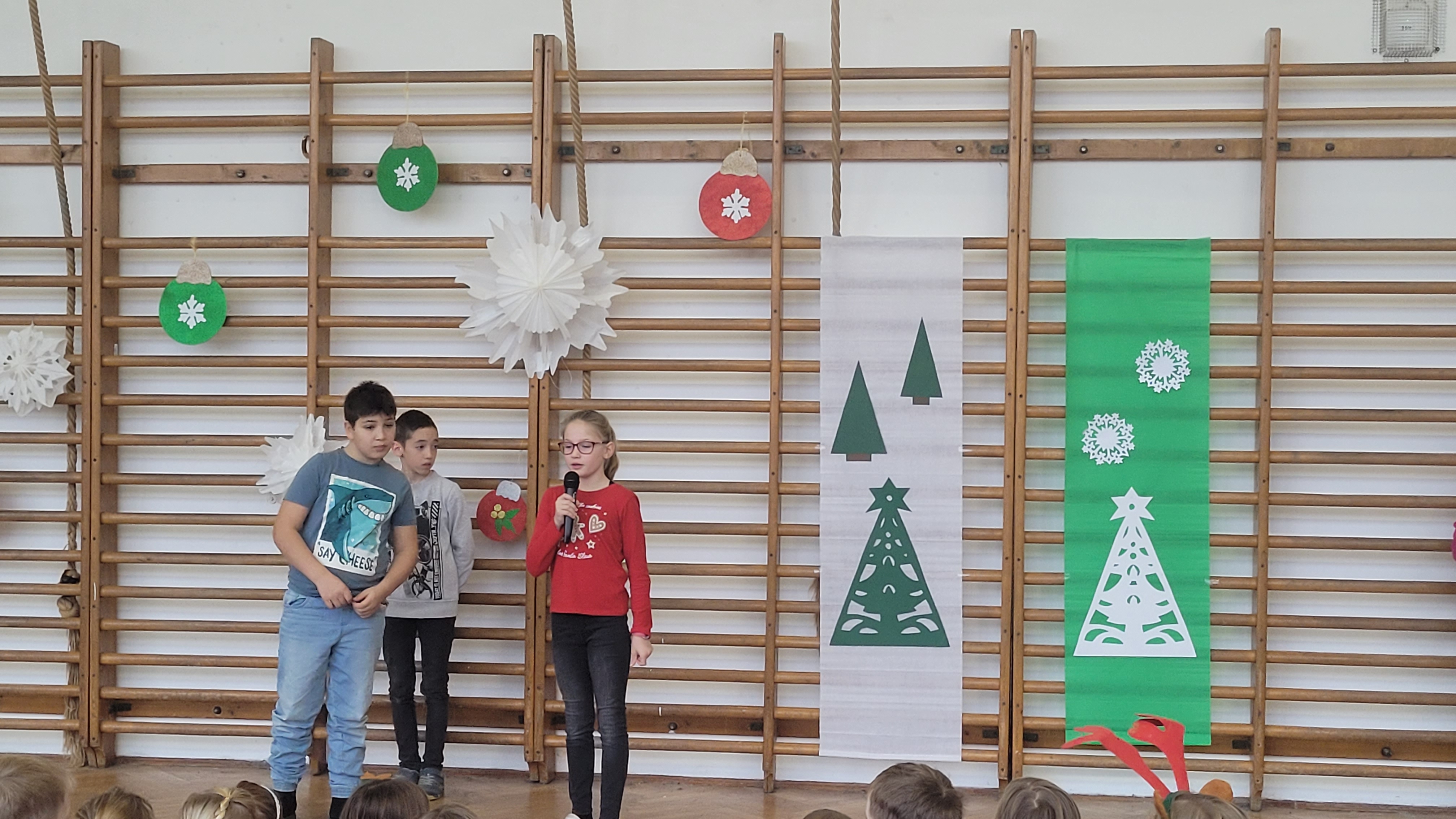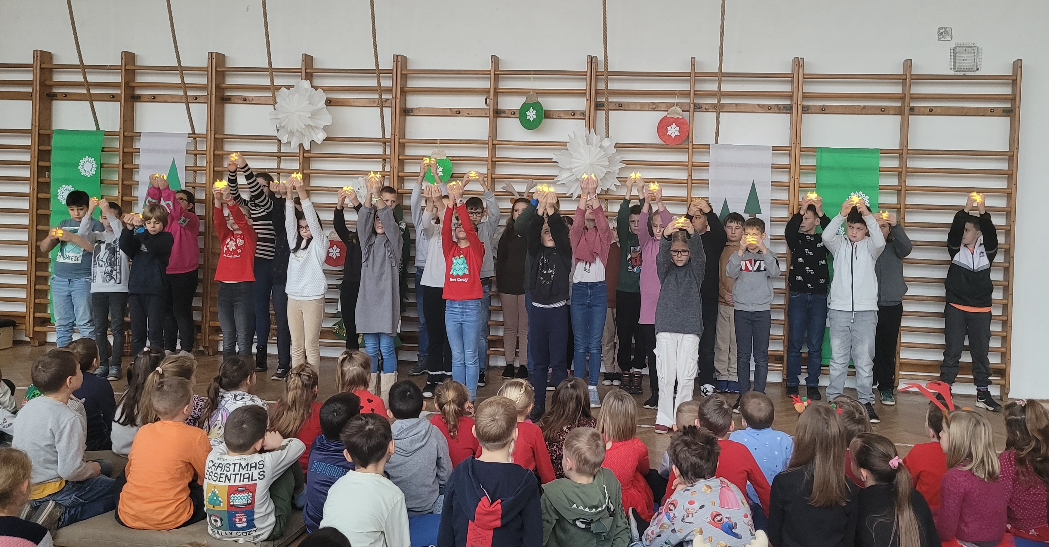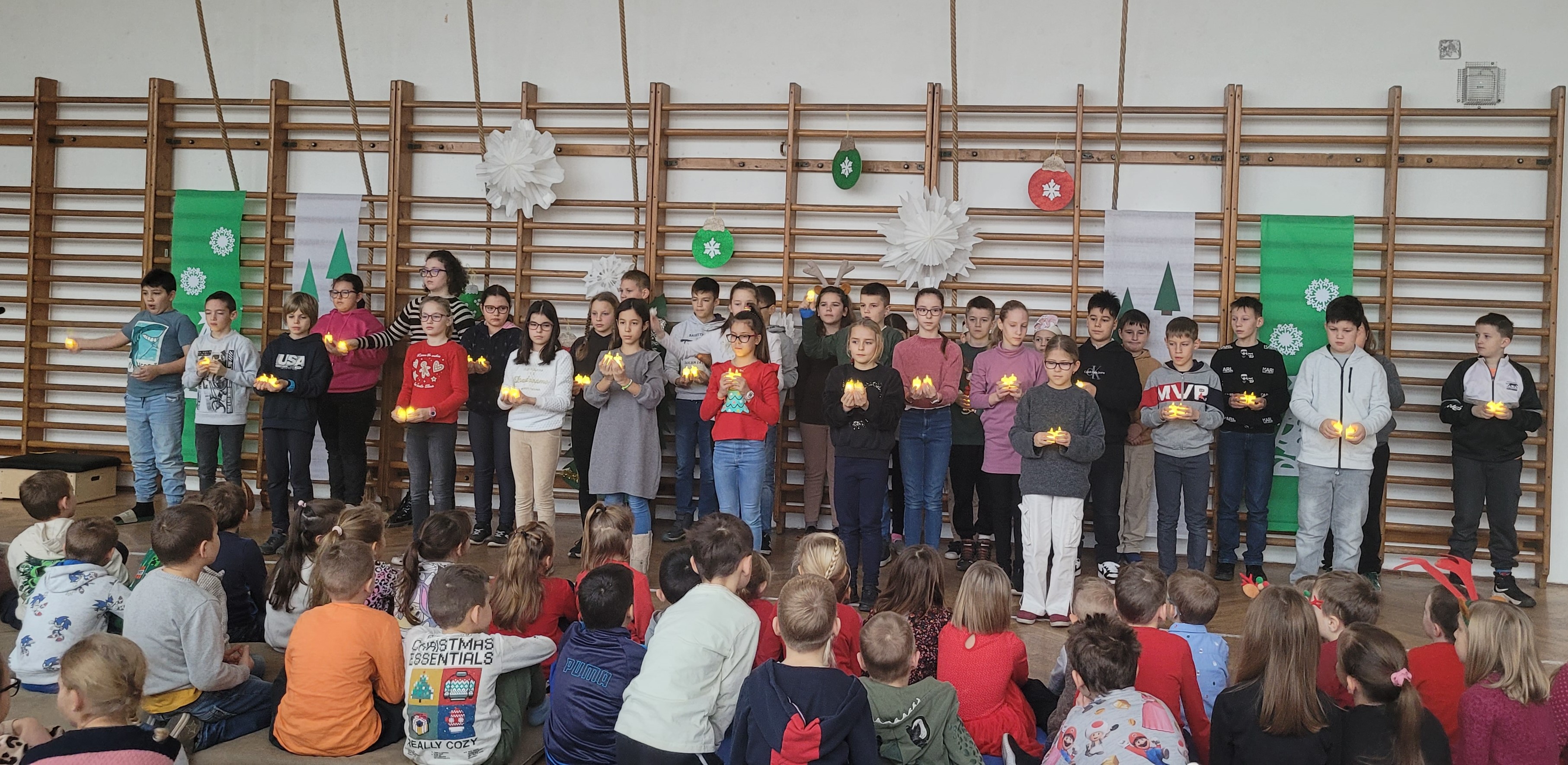 Iskolánkban már hagyománnyá vált, hogy az alsó tagozatos osztályok a kis énekkarral együtt karácsonyváró műsorral kedveskednek egymásnak az utolsó tanítási napon.
