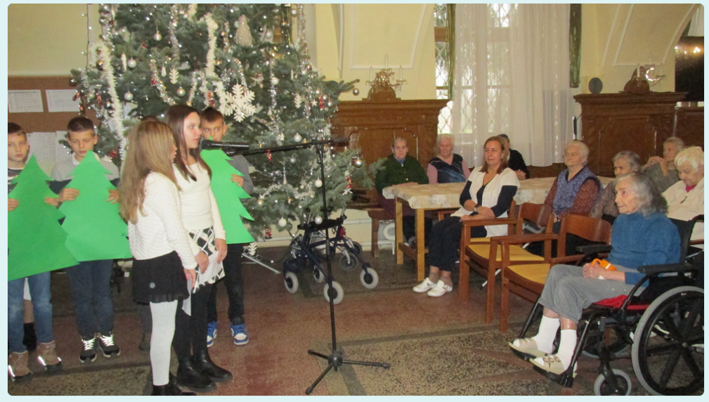 A 2025. év utolsó tanítási napján, december 19-én iskolánk 5. b osztálya karácsonyi műsorral, saját készítésű képeslappal, és szerény ajándékkal kedveskedett a jászberényi Katolikus Szeretetszolgálat Szent Klára Idősek Otthona lakóinak. A gyerekek számára nagy élmény volt a látogatás, átérezhették a „Jobb adni, mint kapni.” szólásunk valódi jelentését.