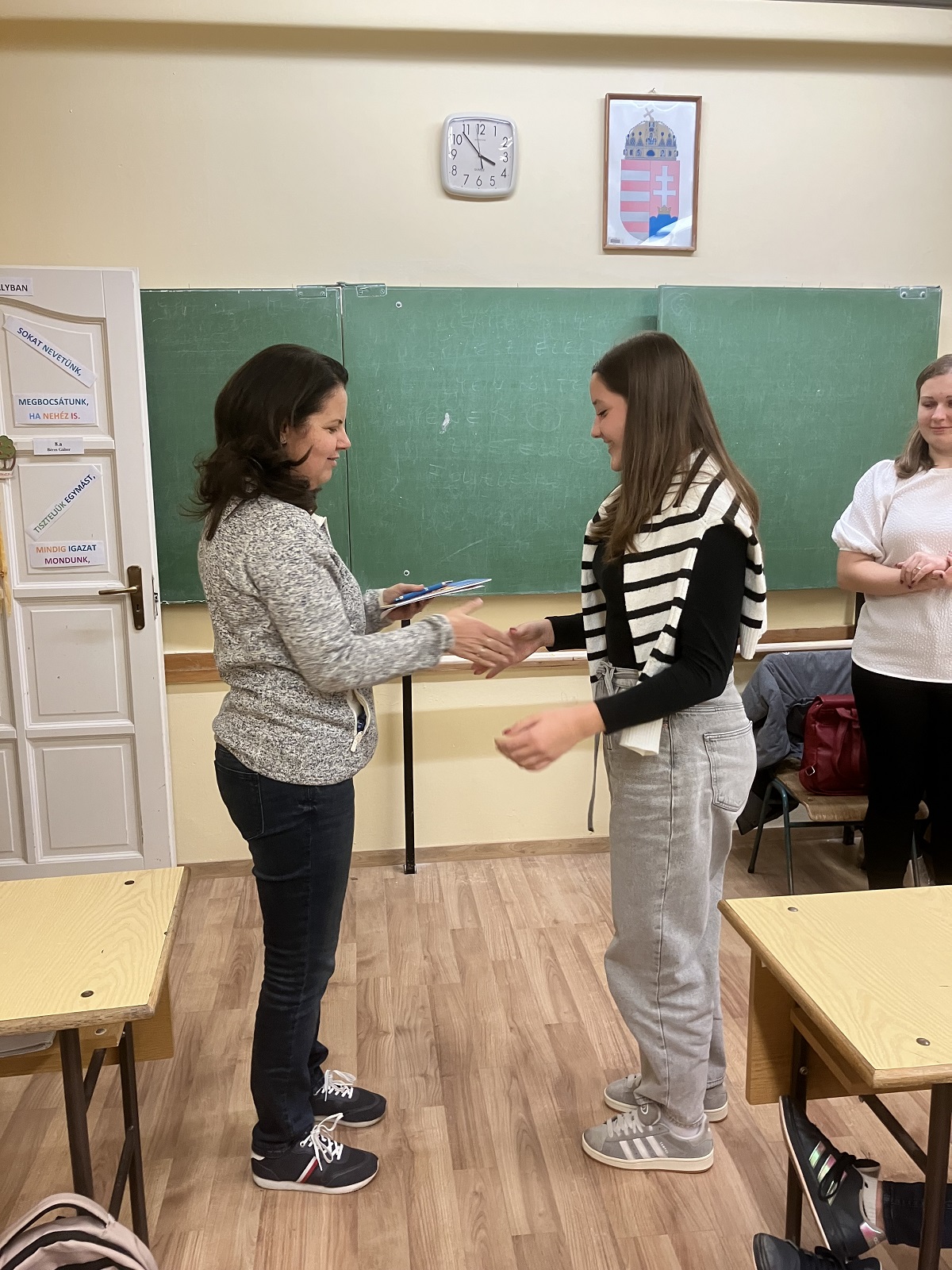 Az ünnepélyes eredményhirdetésre iskolánk Galériájában került sor, amelyet Dr. Zrupkóné Pernyész Lívia főigazgató asszony nyitott meg. Az okleveleket és a díjakat Majzik Zsuzsanna munkaközösségvezető (angol nyelv) és Szerencsés Melinda (német nyelv) adták át.
