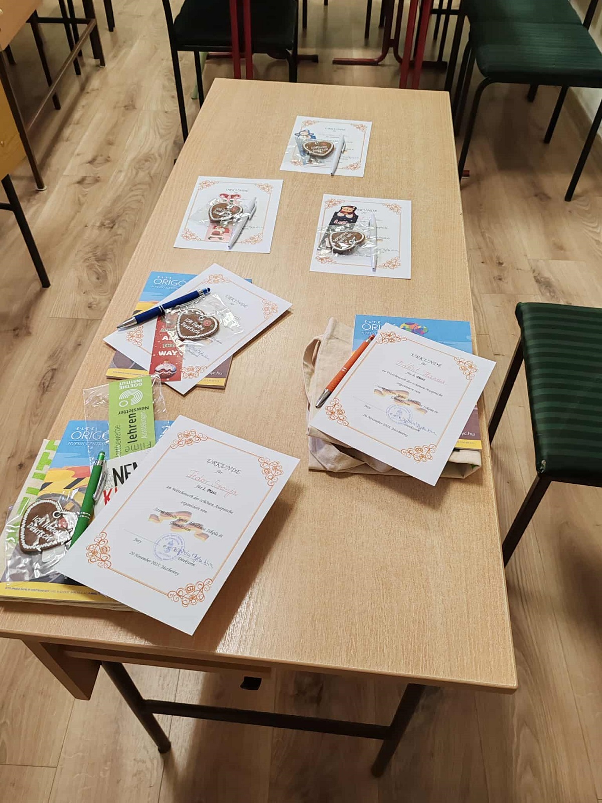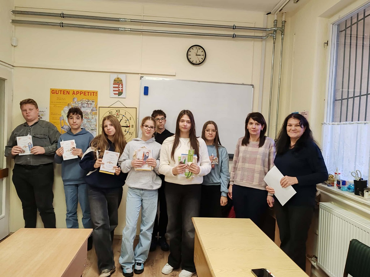 A verseny helyezettjei értékes díjakat kaptak: angol és német nyelvű könnyített olvasmányokat, noteszeket, tollakat, egyéb tárgyjutalmakat.