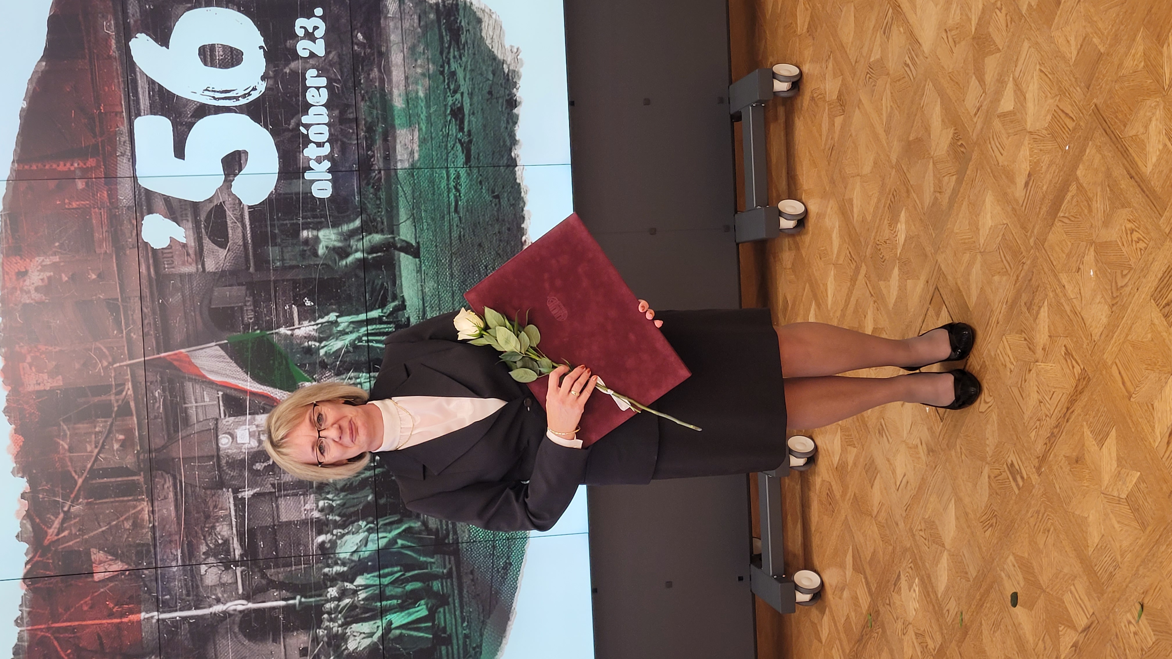 Dr. Gloviczki Zoltán, a Köznevelési Tudományos Tanács elnöke és Dr. Maruzsa Zoltán, köznevelési államtitkár Palkó-Deli Andrea részére a "Tanmenet 2023" pályázatra készített tanmeneteiért elismerő oklevelet adományozott.